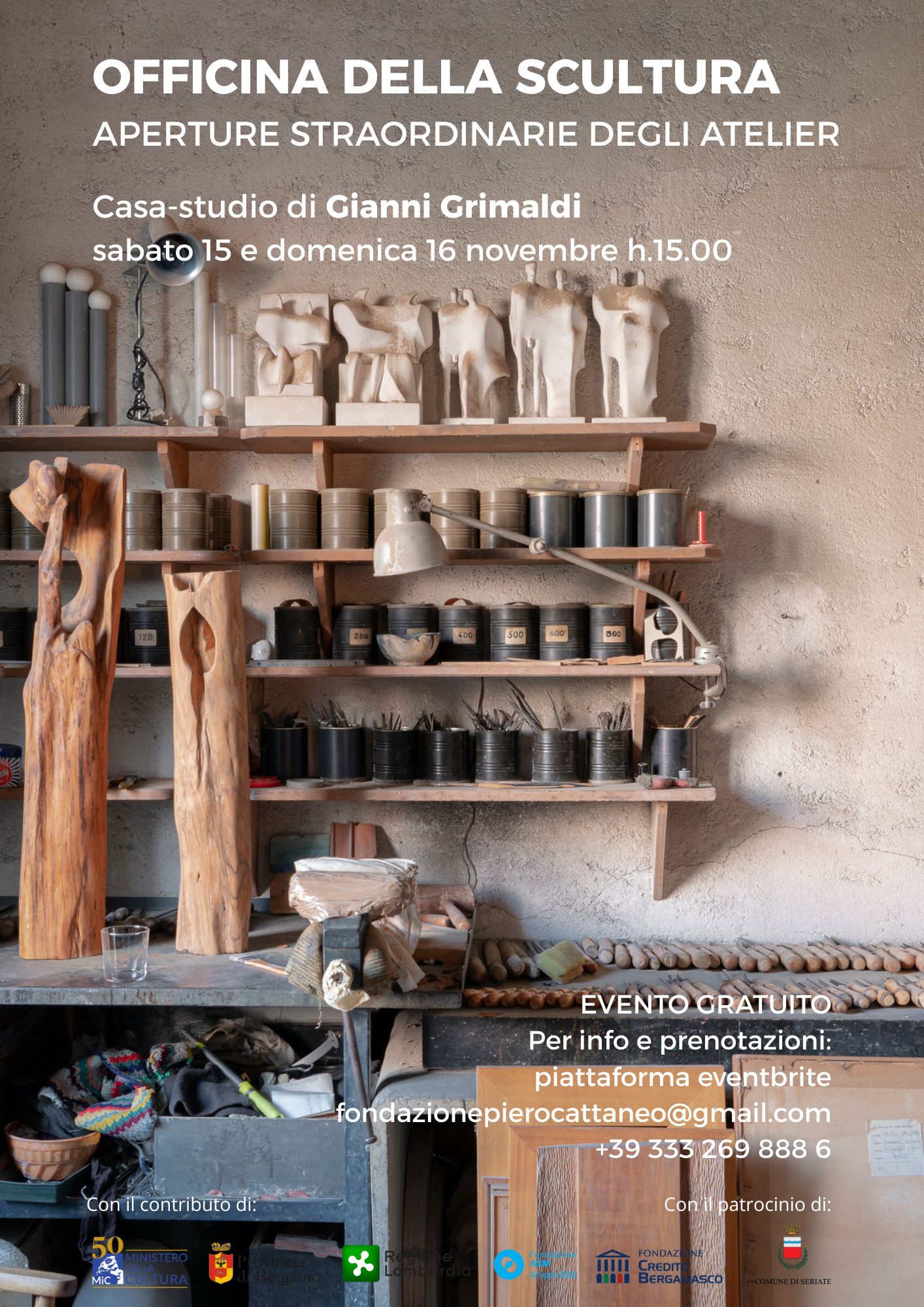 Il progetto “Officina della Scultura”, a cura della Fondazione Piero Cattaneo e patrocinato dal Comune di Seriate - Assessorato alla cultura, ha lo scopo di promuovere la conoscenza dell’arte scultorea lombarda del ‘900. L’attività, sul territorio di Seriate prevede l’apertura dell'atelier di Gianni Grimaldi uno dei più importanti scultori simbolo dell’arte plastica italiana del XX secolo che ha vissuto e lavorato a Seriate.
