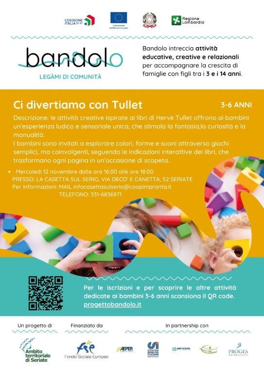 Il progetto Bandolo (finanziato dal bando "Sprint! Lombardia Insieme"), mira a creare nuove opportunità per bambini, ragazzi e adulti mediante l'offerta di attività educative, ricreative e di sostegno alle fragilità dei minori in età 3/14 anni e alle loro famiglie, con un'attenzione particolare ai piccoli comuni, allo scopo di favorire benessere e inclusione. Scopri il progetto bandolo: https://progettobandolo.it/