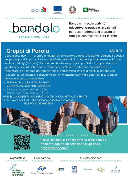 Il progetto Bandolo (finanziato dal bando "Sprint! Lombardia Insieme"), mira a creare nuove opportunità per bambini, ragazzi e adulti mediante l'offerta di attività educative, ricreative e di sostegno alle fragilità dei minori in età 3/14 anni e alle loro famiglie, con un'attenzione particolare ai piccoli comuni, allo scopo di favorire benessere e inclusione. Scopri il progetto bandolo: https://progettobandolo.it/